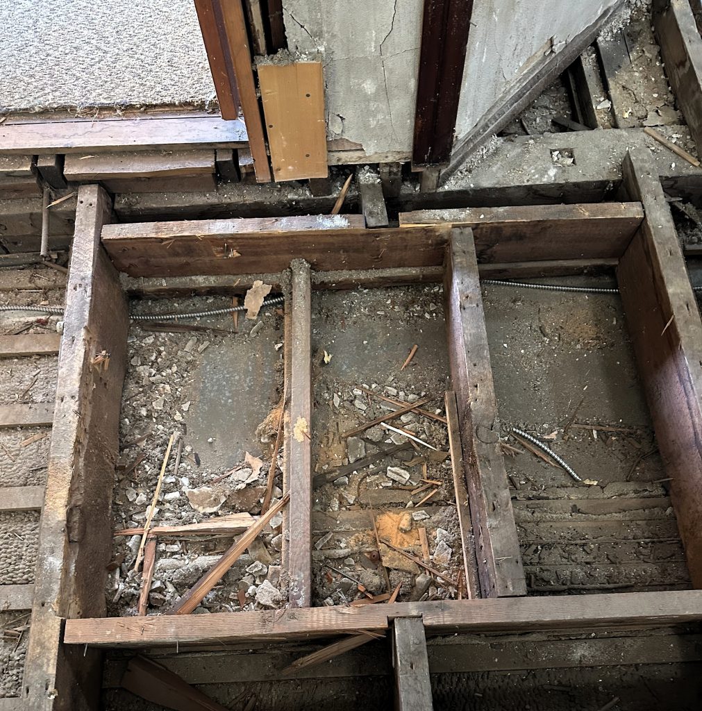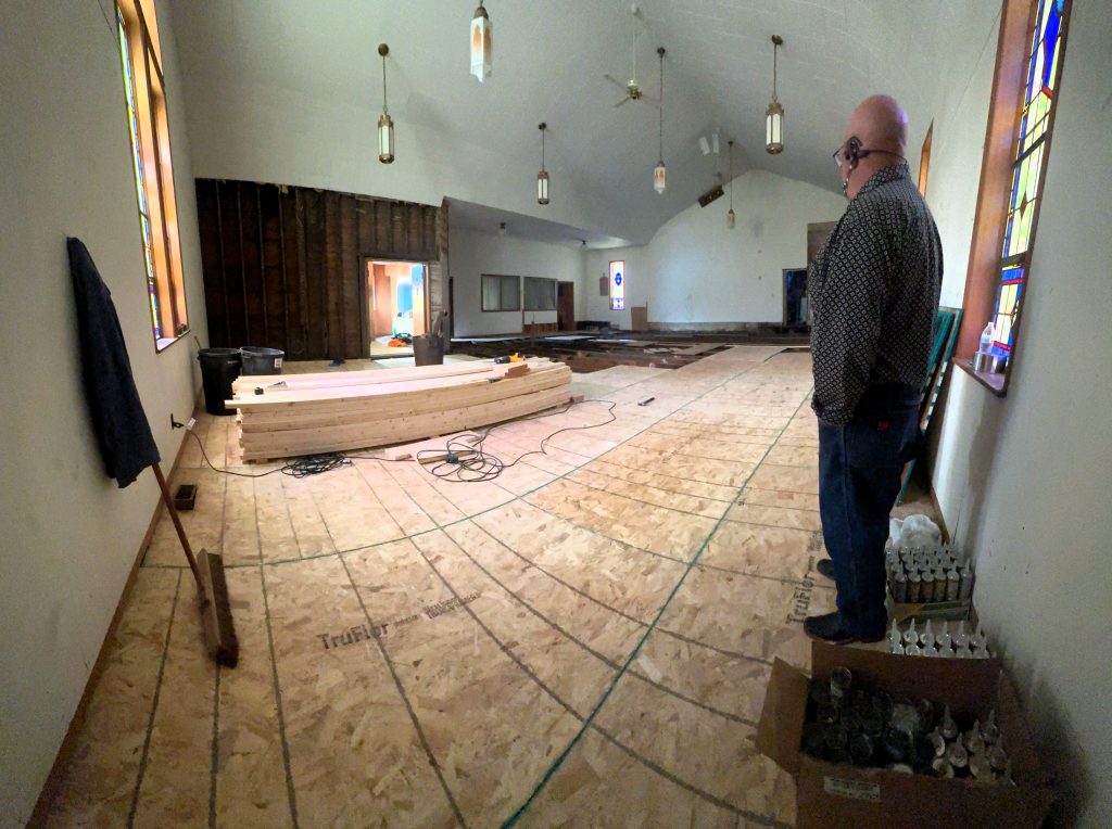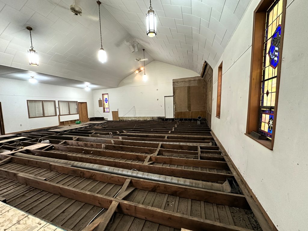 Our task was to replace the sanctuary subfloor. Scott was able to complete this job all the while battling a bout of influenza b.